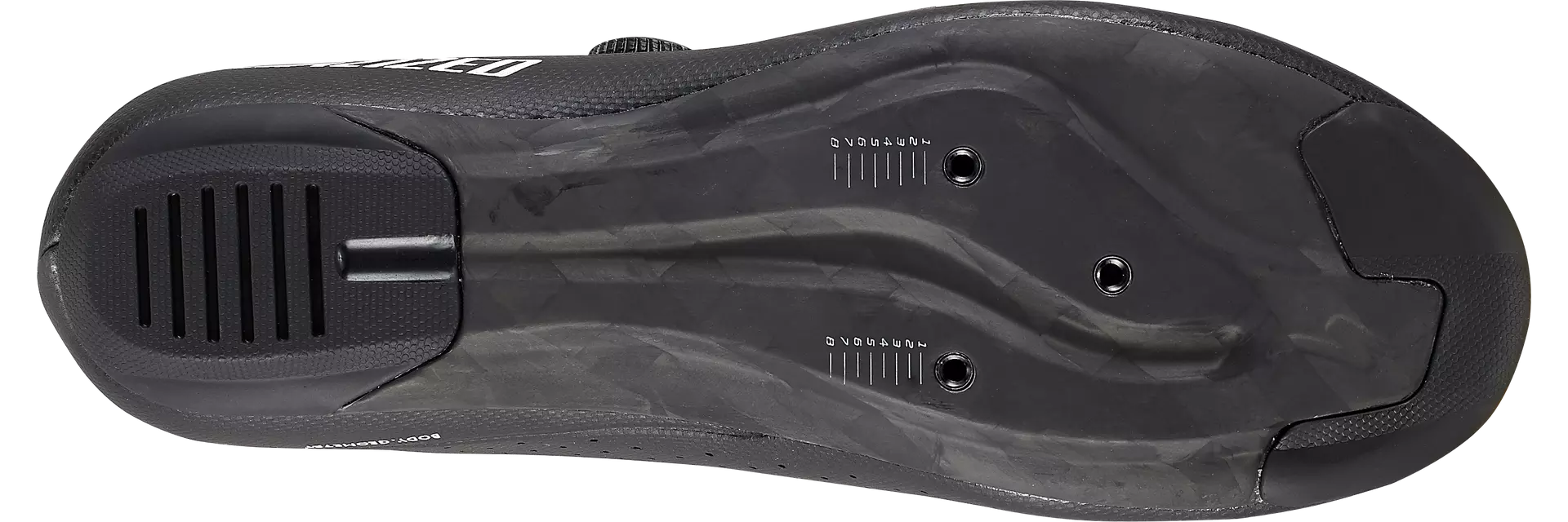 - Kudotusta hiilikuidusta valmistettu pohja, joka on suunniteltu jäykäksi mutta kevyeksi ja jossa on suuri kuminen kantapää ja kärki, jotka takaavat pidon pyöräilyn ulkopuolella.